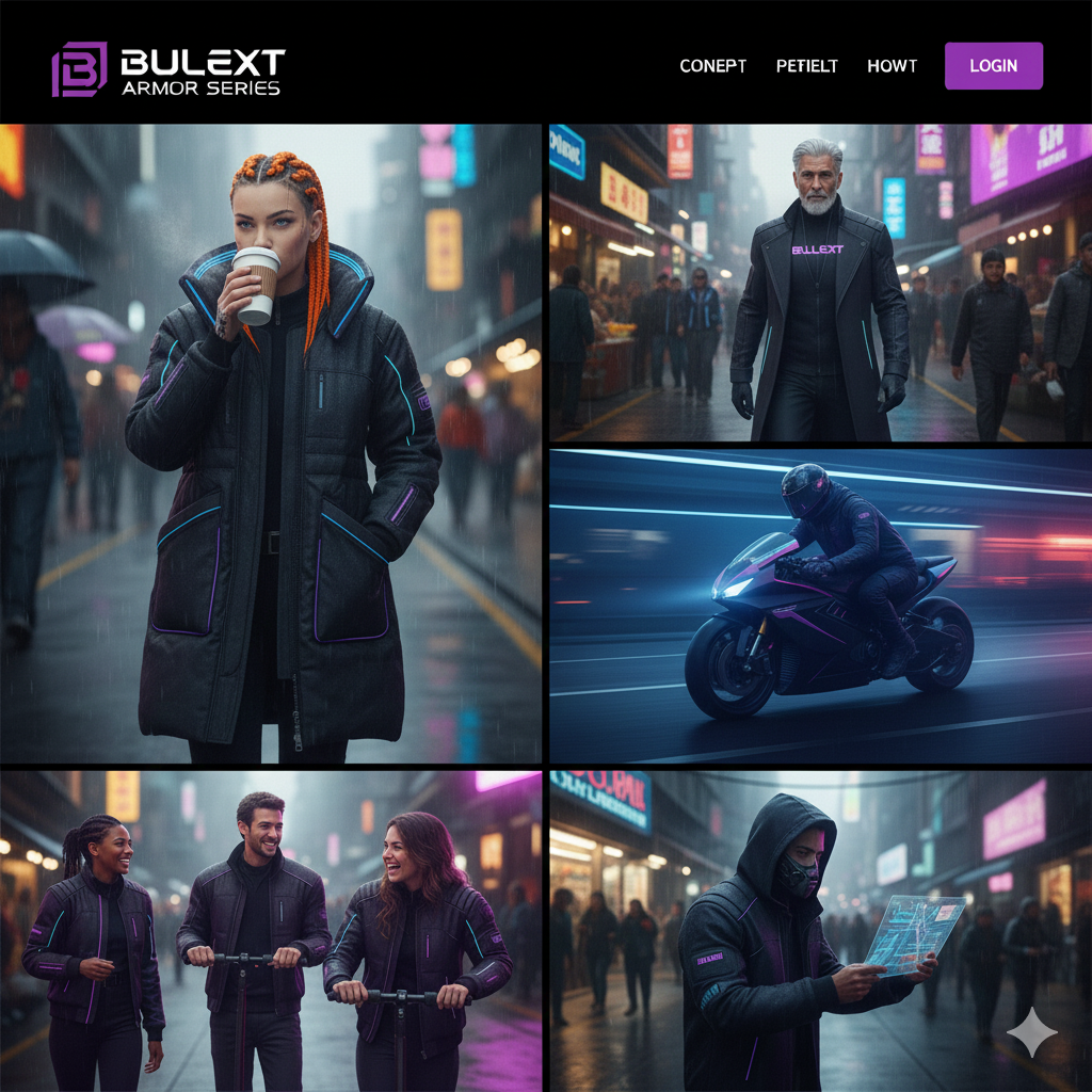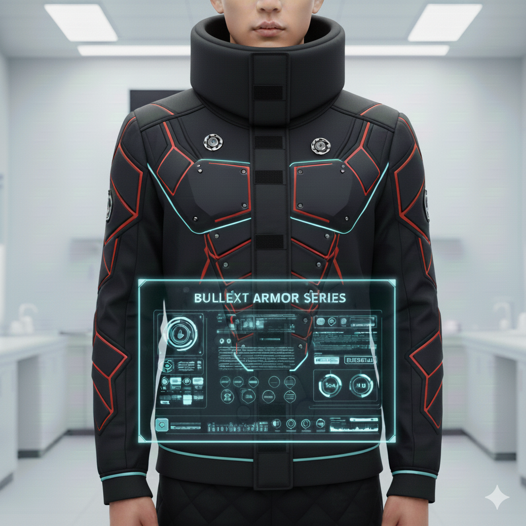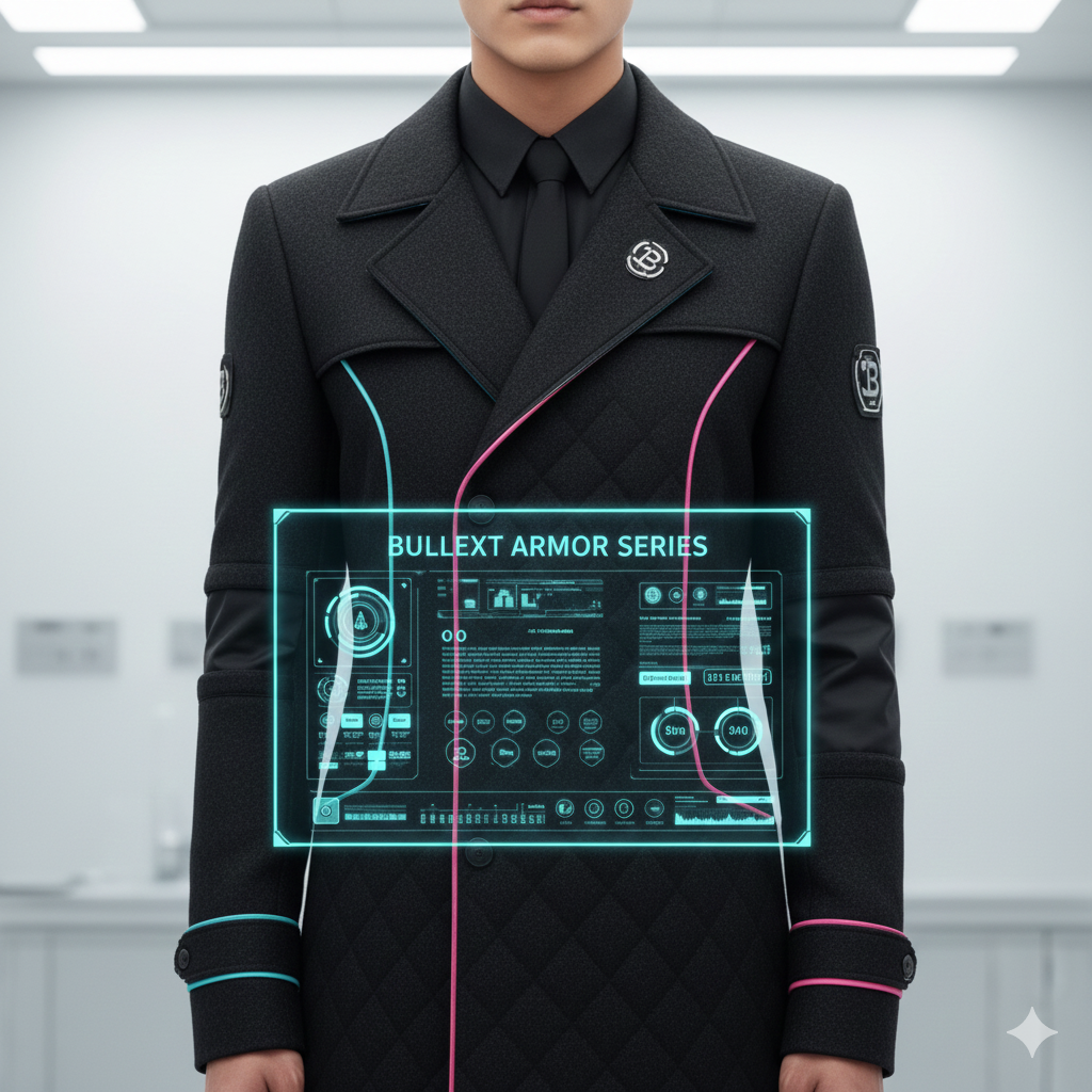 Bullext Armor Series, sadece bir tasarım serisi değil; giyilebilir balistik kumaş teknolojimizin fiziksel dünyadaki ilk adımıdır. Günlük yaşamda giyilebilen, ergonomik ve modern tasarımlı kurşun geçirmez kumaşlardan üretilmiş prototiplerimiz, teknolojiyi ve güvenliği yenilikçi bir moda deneyimiyle birleştirir.